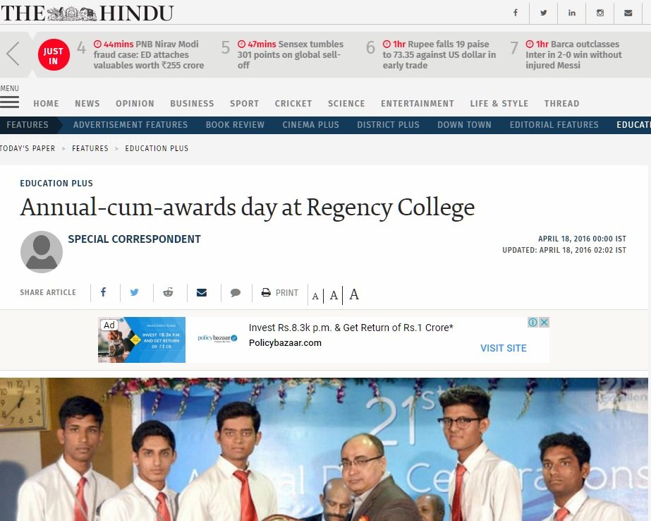 21st Annual Day 2016 Coverage by THE HINDU 21st Annual Day 2016 by THE HINDU