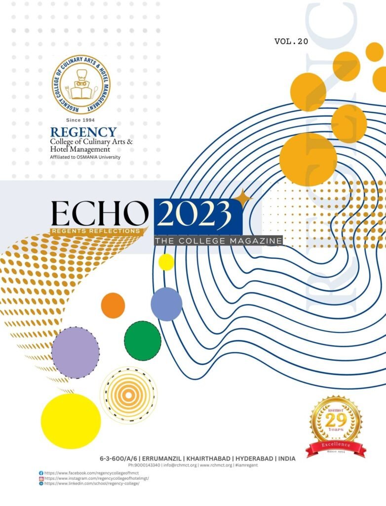 ECHO-2019 ANNUAL MAGAZINE Regency College of Hotel Management celebrated its 24th annual day and released the college annula magazine to mark the occassion Echo 2019
