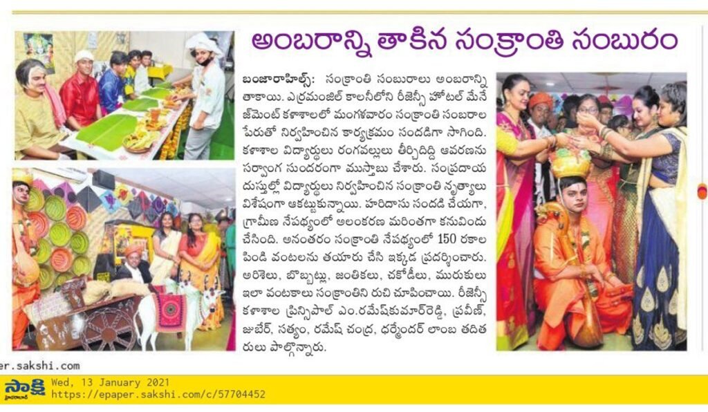 Sankranthi Celebrations at Regency College of Hotel Management