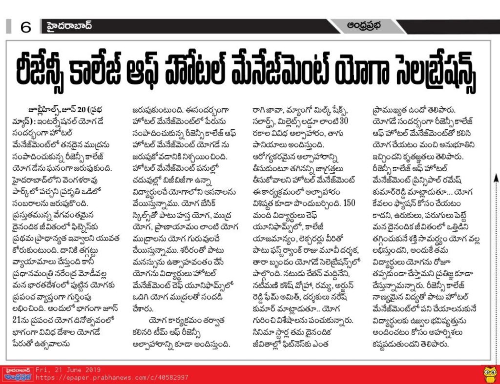 Regency College of Hotel Management | INTERNATIONAL YOGA DAY | NewsUnbox