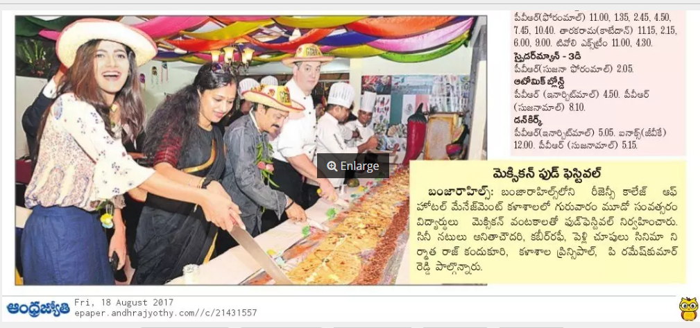 MEXICAN FOOD FESTIVAL BY 3RD YEARS – 2017 – ANDHRA JYOTHI MEXICAN FOOD FESTIVAL – 2017- ANDHRA JYOTHI